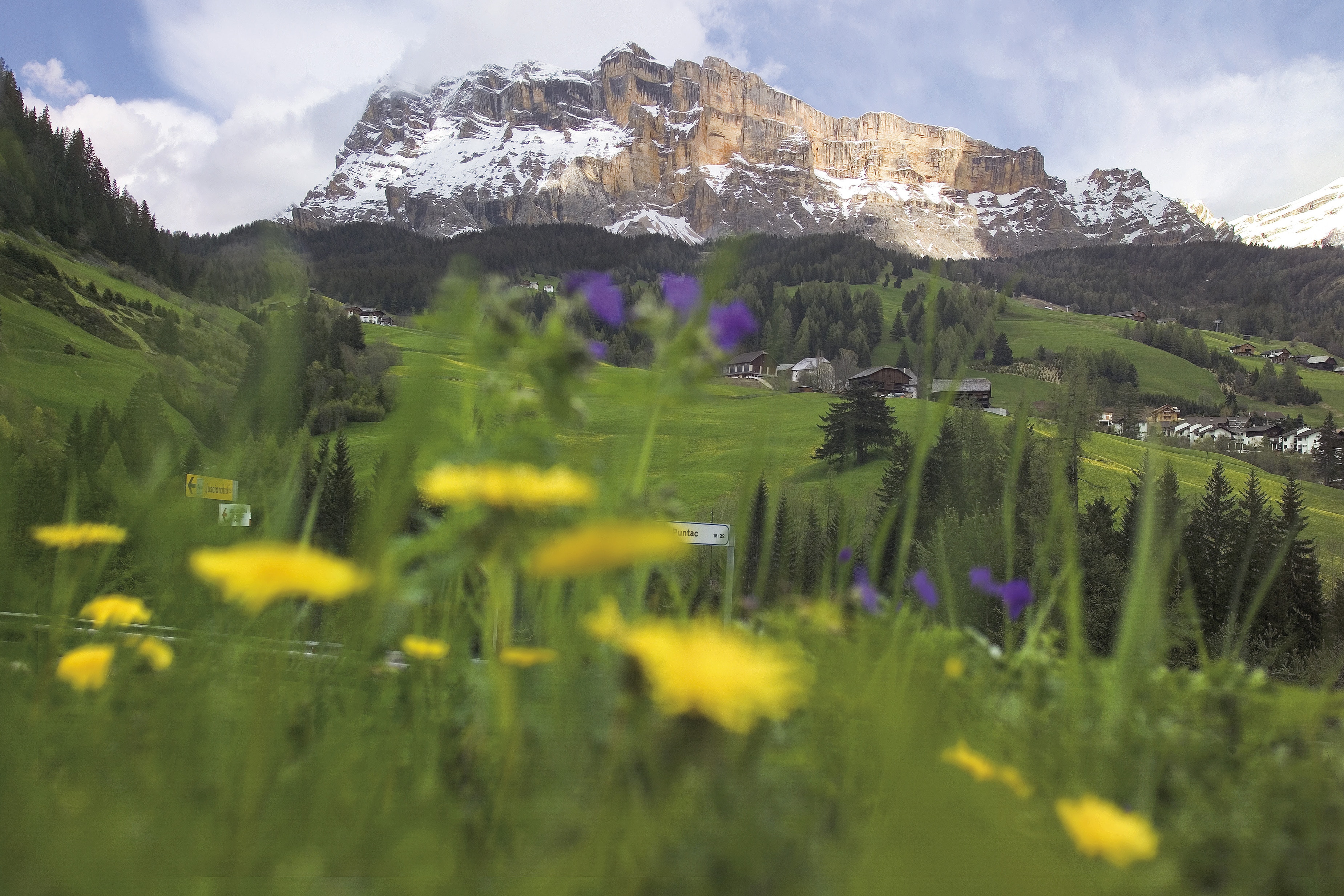 In Corvara wartet schon die zweite Bergbahn: Die Gondel zum Col Alto. Von der Bergstation hat man einen prachtvollen Blick in die Südwände des gegenüber liegenden Sassonghers. Nach kurzer Abfahrt nimmt ein Sessellift den ersten Teil der Auffahrt zur Bioch Hütte ab. Der folgende Abschnitt der Runde über die Bioch Hütte nach Pralongia bietet viel Abwechslung auf Trails und Wiesenwegen, aber auch Treppenstufen bergauf. Wer den Blick auf die Marmolada richtig genießen möchte, kehrt in der Pralongia Hütte ein.