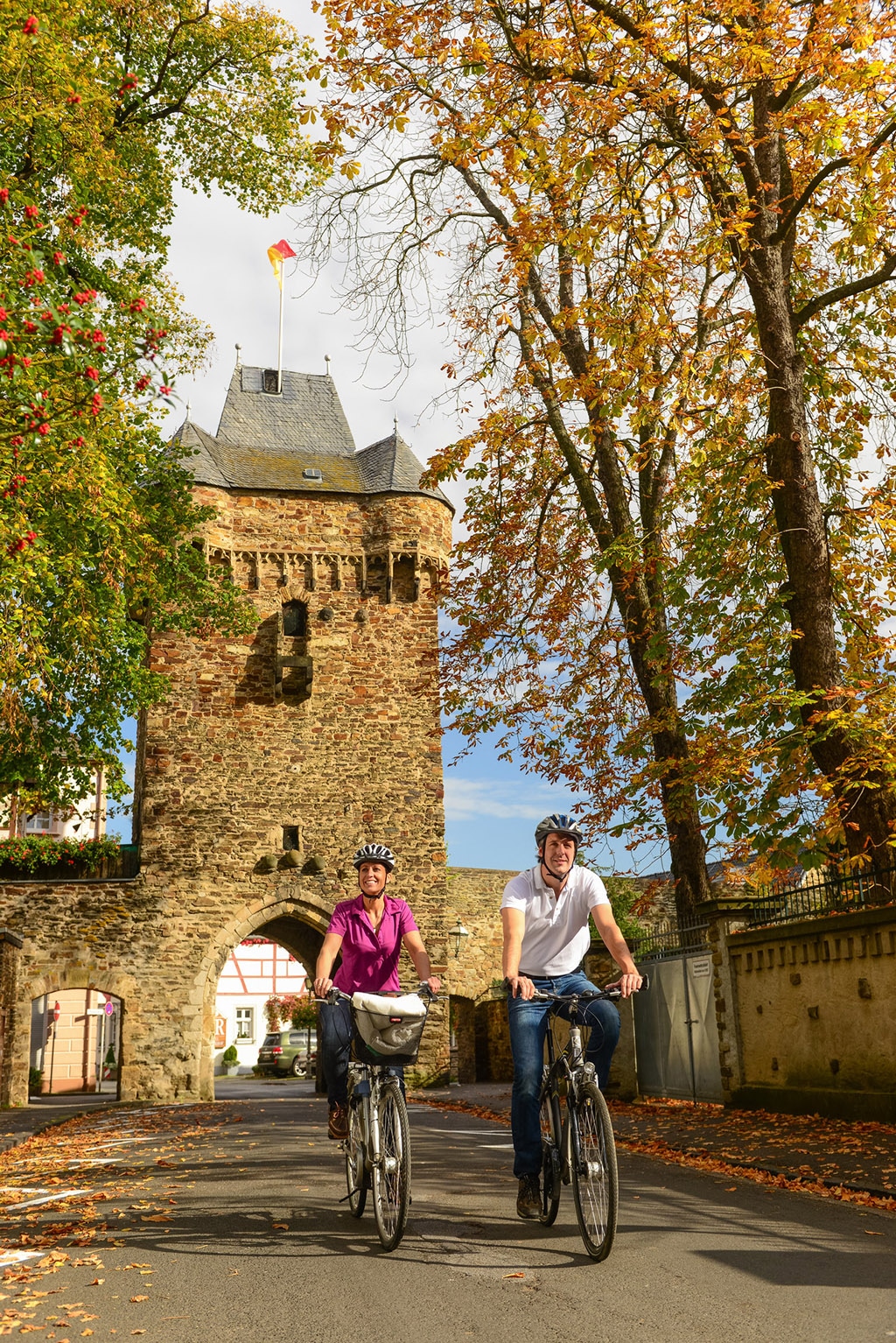 Mitten durch die aufregende Landschaft des Ahrtals schlängelt sich dieser malerische Radwanderweg. Die ca. 80 Kilometer zählende Tour startet an der Ahrmündung bei der Barbarossastadt Sinzig und führt mitten durchs Rotweinparadies Ahrtal bis hin nach Blankenheim, wo der eigenwillige Nebenfluss des Rheins entspringt.