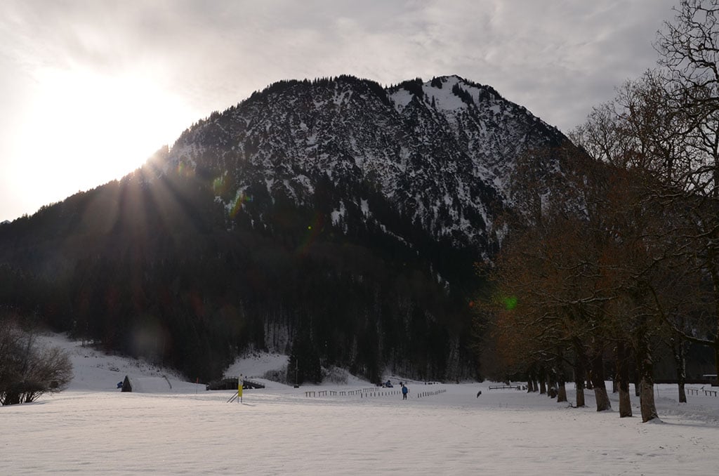 Die Diese ausgedehnte Winterwanderung geht tief in das schöne Söllbachtal hinein. Startpunkt ist der Söllbachtalparkplatz in Bad Wiessee. Von hier aus der Beschilderung folgen und einen leichten Anstieg hinauf zum Bauern in der Au, den man nach circa 30 Minuten Gehzeit erreicht – die Einkehr hält man lieber für den Rückweg und einen wärmenden Tee zurück. Weiter geht es auf dem breiten und gewaltzem Wanderweg in Richtung Luckengraben-Alm und ins Söllbachtal hinab. Ab hier ist die einzige Passage, die im Winter nicht geräumt ist – also bei der Schuhauswahl daran denken, entsprechend festes und hohes Schuhmaterial anzuziehen. Man folgt dem Weg weiter in Richtung Süden zu immer ausgeschilderten Schwarzentenn Alm. Wenn die Sonne bis dorthin durch den Wald und die mangelnde freie Fläche nicht zu sehen war, ab hier wird die Landschaft wir immer idyllischer und nach einem letzten steileren Anstieg hat man die große Almfläche im Bereich der Schwarzentenn Alm erreicht. Eine Einkehr sollte zum Aufwärmen und für eine kleine Jause in jedem Fall gemacht werden – der Weg führt auf der gleichen Strecke wieder zurück zum Ausgangspunkt der Winterwanderung – dem Wanderparkplatz in Bad Wiessee.