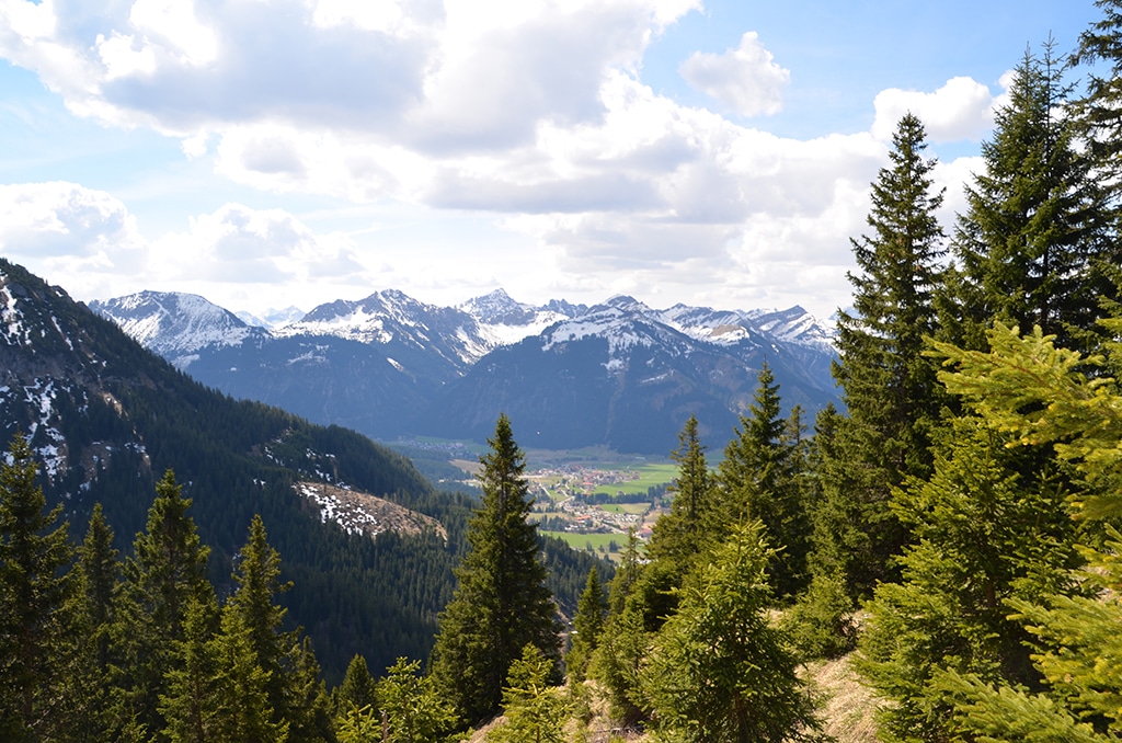 Vom Wanderparkplatz in Grän folgt man dem breiten Fahrweg (411) in Richtung “Bad Kissinger Hütte Aggenstein”, der direkt auf den Aggenstein zuführt. Man folgt der Beschilderung “Wanderung Aggenstein” und gewinnt nach einer kleinen Brücke langsam die ersten Höhenmeter. Der breite Forstweg verwandelt sich nun in einen schmalen Pfad, der sich in kleinen Serpentinen den Bergrücken entlang schlängelt.