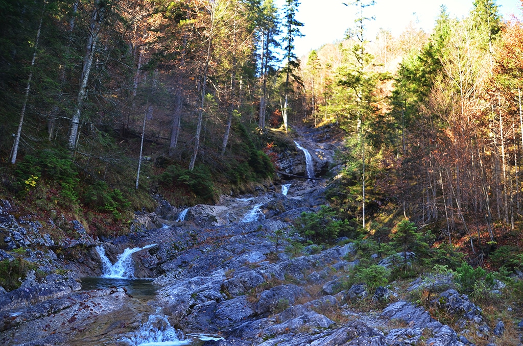 Panoramatour in der Alpenwelt Karwendel. Die Bergwanderung bringt alles mit, was eine schöne Tour ausmacht. Durchsteigung einer Klamm, zwei Gipfel, inklusive einer Gratüberschreitung, traumhafte Ausblicke auf das gesamte Karwendel und bei gutem Wetter auf den Alpenhauptkamm. Der komplette Bergkessel ist bei der Tagestour, für die man gut acht Stunden einplanen sollte, einsehbar. Vom Gipfel des Stierjoch (1.908 Meter) liegt der Sylvensteinspeicher und der Ausgangspunkt der Tour scheinbar unendlich entfernt. Highlight ist die Gratwanderung, die zwar nicht ansatzweise so wild wie die zackige Karwendelkette an der Vogelkarspitze ist, aber ein Panorama-Genuss bietet, der im Sommer und Winter, dann als Skitour, in der “Alpenwelt Karwendel” zu den Höhenpunkten zählen darf. Bei gutem Wetter sind die Spitzen des Großvenediger, Großglockner und der gesamte Alpenhauptkamm zu sehen. Gegenüber liegen die Spitzen der Fleischbank und der Mondscheinspitze. Die Runde bringt alles mit, was das Thema “Wandern im Karwendel” ausmacht.