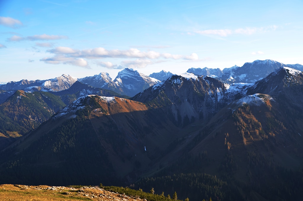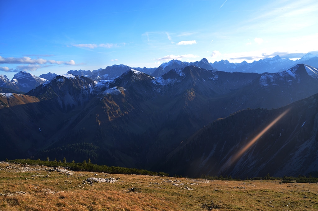 Wer die Länge der Bergwanderung nicht scheut, der findet eine traumhafte Rundtour vor. Die Gratwanderung ist sicher eine der schönsten in der gesamten Region Alpenwelt Karwendel und bei schönem Wetter hat man eine traumhafte Aussicht auf den Alpen Hauptkamm. Wer später startet, sollte eine Lampe oder Stirnlampe mit im Gepäck haben – im Herbst sind wir in der Dunkelheit wieder am Wanderparkplatz eingetroffen.