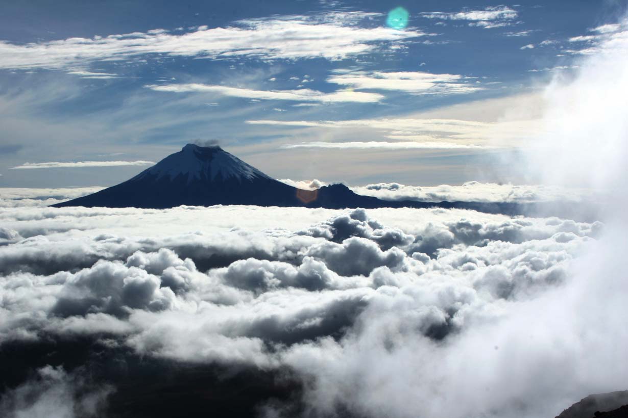 Wenn der immer schneebedeckte Gipfel im Sonnenlicht erstrahlt, bietet dies ein beeindruckendes Schauspiel. Seine atemberaubenden, tiefen Schluchten wurden über Jahrtausende hinweg durch Lavaströme geformt. Zu ihrer Zeit lösten die Ausbrüche grosse Besorgnis in der Gegend aus. Doch die Lava schuf auch neues Leben: fruchtbare Täler machten so die Umgebung zu den produktivsten Regionen Ecuadors. Der Name des Berges bedeute in der Sprach der Ecuadorianer “Hals des Mondes” oder auch “Nacken des Mondes”. Von einem bestimmten Winkel aus gesehen geht der Mond direkt hinter dem Berg auf und steigt direkt über den Gipfel weiter, so das er als “Kopf” über dem Hals oder Nacken zu thronen scheint. Der immer Schnee bedeckte obere Teil des Berges kann dabei als Poncho gesehen werden – und so haben es auch schon die einheimischen Völker der Region getan. Der Berg galt schon vor dem Beginn der Inkaherrschaft im 15. Jahrhundert als Heiliger Berg. Man sah ihn als Regenspender und damit Garant für die Fruchtbarkeit des Landes an und verehrte ihn sogleich als Sitz von Göttern.