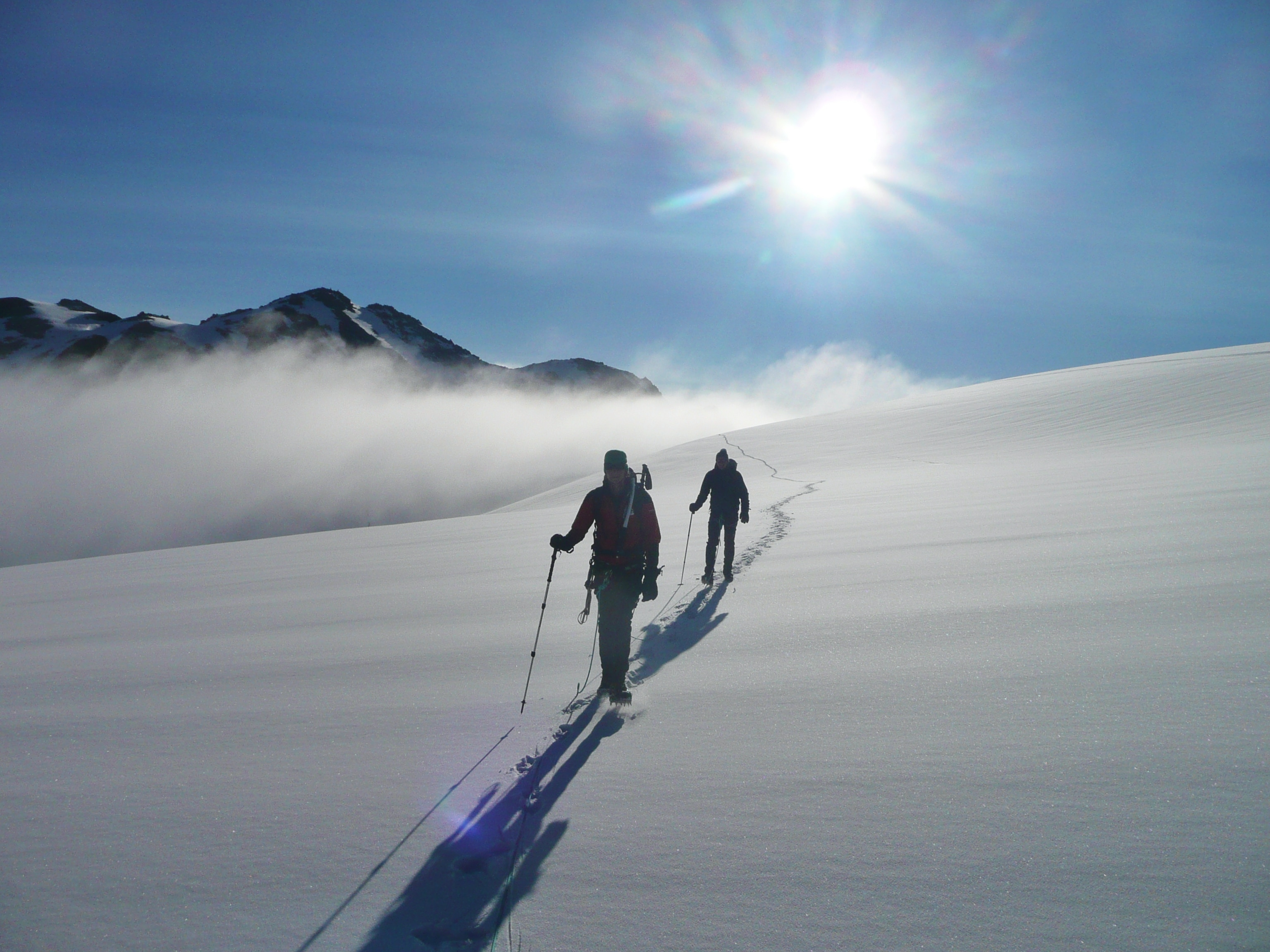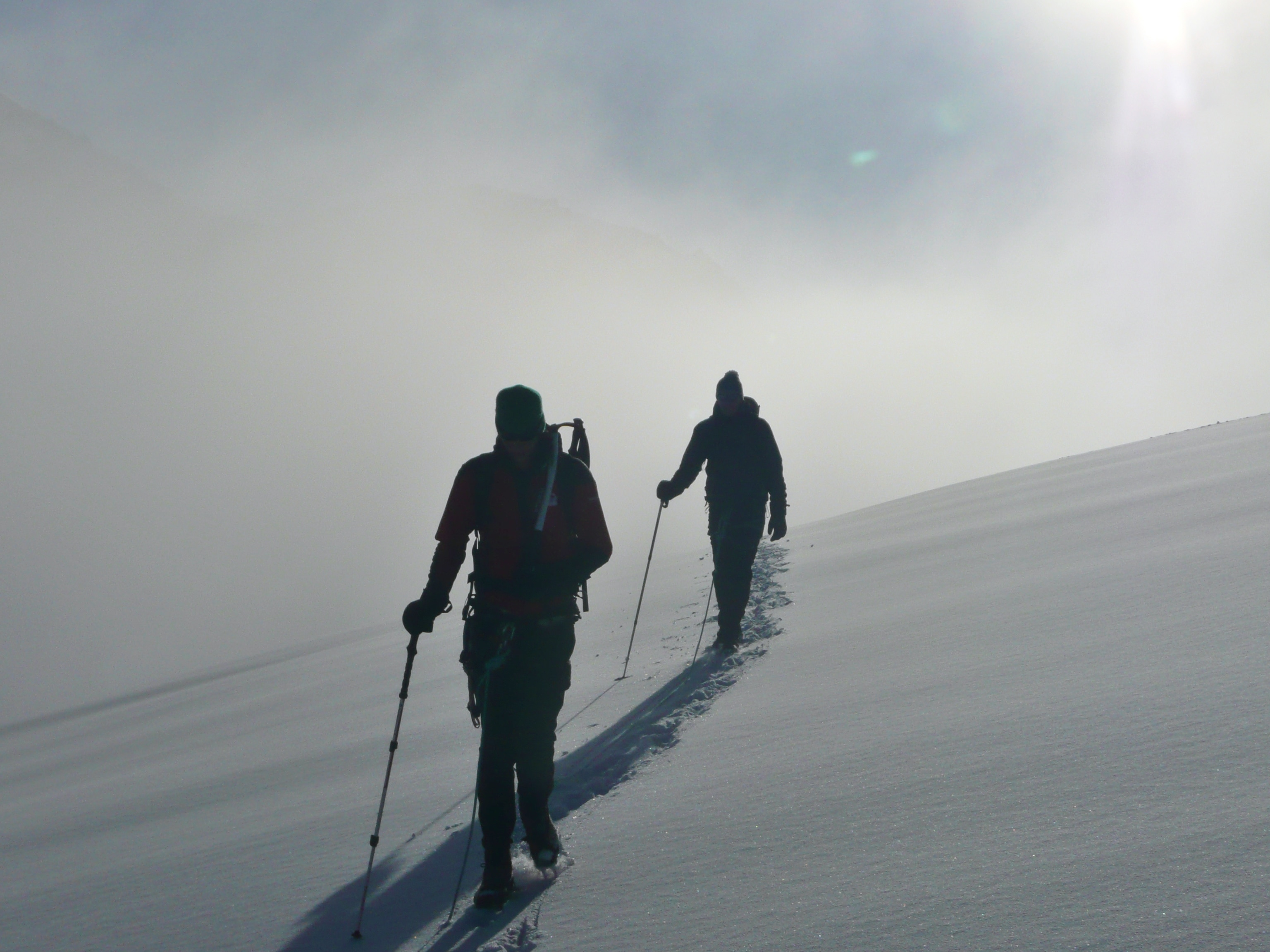 Kurzer unangeseilter Abstieg von der Cabane du Trient bis auf das Plateau du Trient. Danach Querung des Gletschers in einer Dreierseilschaft, mit leichten Anstiegen bis 20 Grad. Der Schlussteil, der bis an den Fuß der Aiguille du Tour führt, geht dann doch etwas steiler zu (bis 35 Grad). Nach einem Rucksackdepot circa 60 minütiger Aufstieg auf die Aiguille du Tour mit Kletterein im 2-3 Grad. Abstieg und weiter über das Col Pissoir zur Albert Premiere Hütte und von dort bis nach Le Tour zurück.