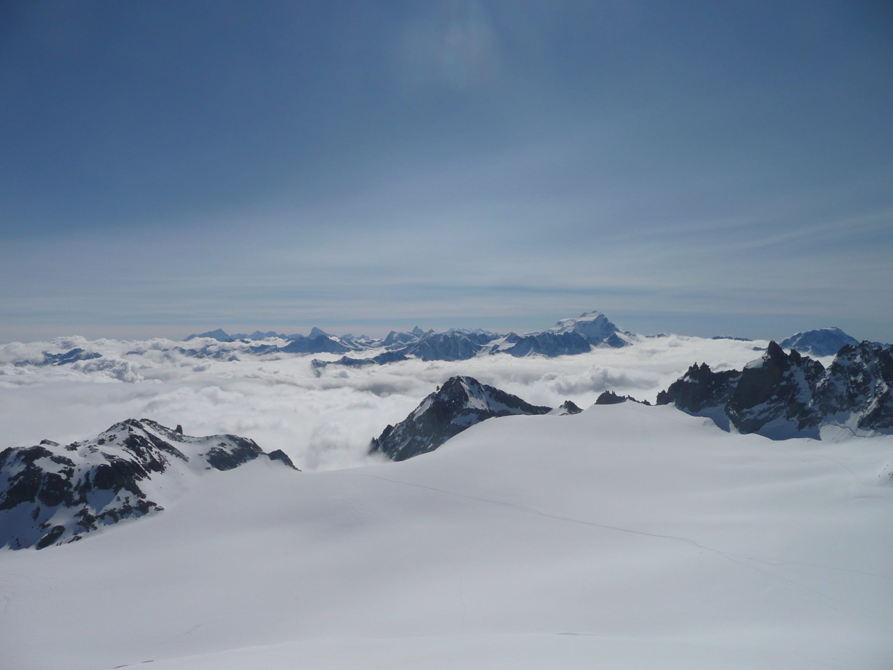 Mittelschwere Hochtour im Mont Blanc Massiv. Zunächst über den Trientgletscher geht es an den Rand der Aiguille du Tour (3.544 m). Der Aufstieg ist über mehrere Routen möglich, wir haben die rechte Variante gewählt, die im oberen Drittel wieder auf die “Normalroute” stößt. Der Aufstieg findet im 2-3 Schwierigkeitsgrad statt – vom Gipfel der Aiguille du Tour genießt man einen wunderbaren Blick auf den Mont Blanc.