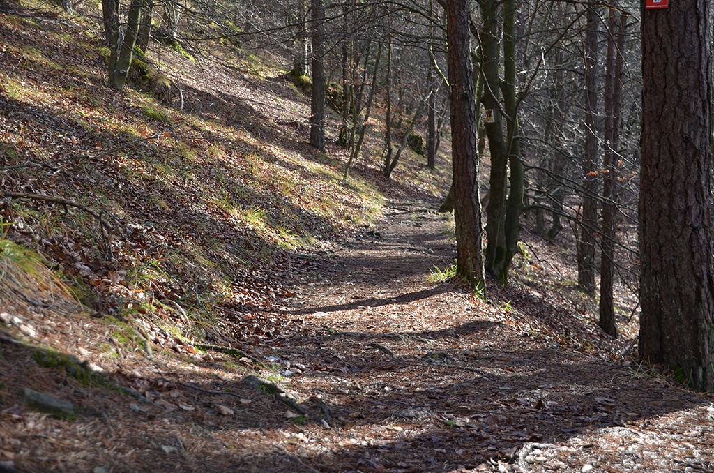 Weiter und immer der “grünen 3” folgen und vorbei an der Bergwachthütte der Sektion Noris gelangt man zu einer Wegkreuzung unterhalb des Prellsteins – ab hier ist der rote Punkt in Richtung Höhenglücksteig nicht mehr zu verfehlen. Man umrundet nun in einer weiten Schleife die Felsen und kann schon oberhalb des Wanderweges die ersten Klettersteiggeher des Höhenglücksteigs erkennen und hören. Nach wenigen Minuten erreicht man den Einstieg in den Klettersteig und die Via Ferrata Bambini, ein für Kinder aufgebauter Einsteiger Klettersteig. Ab hier hat man zwei Varianten im Angebot: Entweder auf dem Klettersteig weiter gehen oder die Umrundung zu Fuß. Die Klettersteigvariante haben wir etwas weiter unten beschrieben.