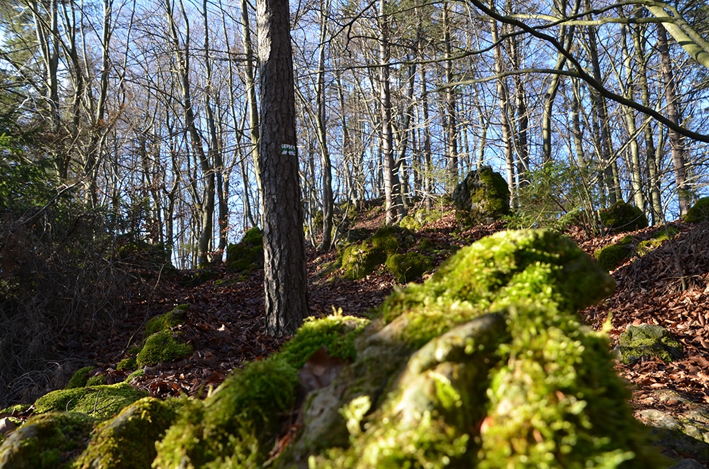 Die Wanderung geht nun gerade aus, auf dem gelben Querbalken und führt steiler hinauf. Oben hält man sich rechts und folgt wieder der “grünen 3” und dem “grünen Querbalken”, der einen wieder hinab in Richtung Prellstein führt und in einer Variante hinab nach Hirschbach.