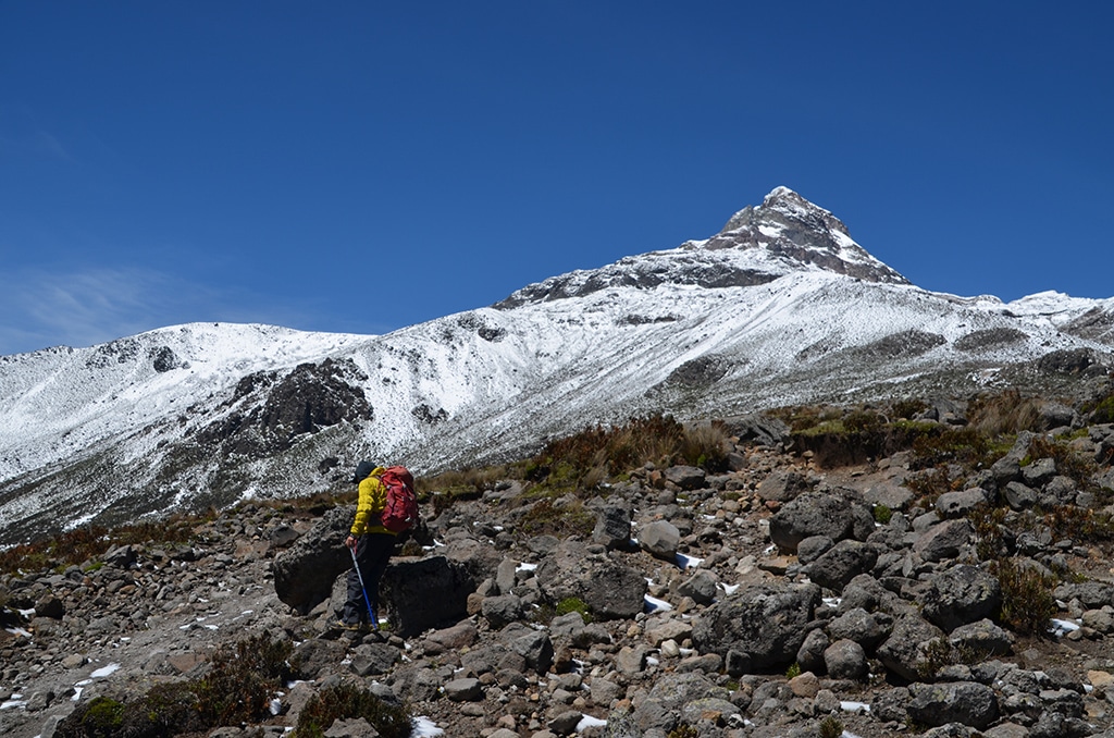 Tourstart ist in Quito, von dort geht es mit einem Allradfahrzeug auf deutlich über 4.000 Meter. An einem Parkplatz auf etwa 3.800 Metern Höhe lassen wir den Jeep stehen und machen uns auf die zunächst karge Paramolandschaften auf den Weg zum Refigio Nuevos Horizontes (4.700 Metern) – also nur rund 100 Metern weniger als der Gipfel des Mont Blanc. Der Aufstieg zum Refugio Nuevos Horizontes nimmt circa 3 Stunden in Anspruch, gegen Nachmittag sollte man mit dem hier landestypischen Regen rechnen.