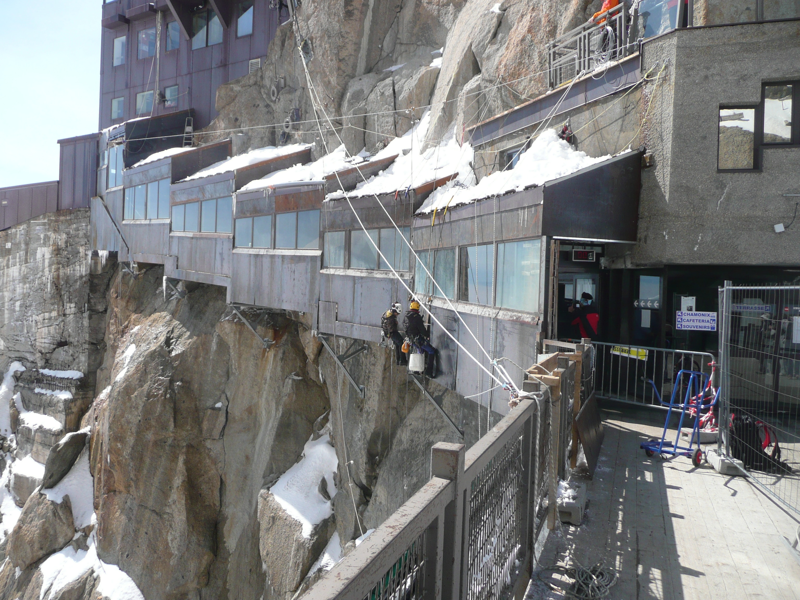 Die Aiguille du Midi (3.842 Meter) ist ein felsiger Vorposten im Mont-Blanc-Massiv südlich von Chamonix und überragt das Stadtzentrum um 2.800 m. Der Gipfelbereich ist durch eine Seilbahn für den Tourismus erschlossen und stellt einen der beliebtesten Aussichtspunkte auf dem höchsten Gebirgszug der Alpen dar. 1955 wurde die Seilbahn Télépherique de l’Aiguille du Midi eröffnet. Sie führt von Chamonix in zwei Sektionen auf die Felsspitze. Von der Mittelstation auf der Plan de l’Aiguille (2310 Meter) hängt das Seil ohne Zwischenstützen kilometerlang und 1467 Meter hoch bis zur Bergstation. Von hier aus geht man in gut 45 Minuten zum Tagesziel, dem Refuge des Cosmiques (3.613 Meter).