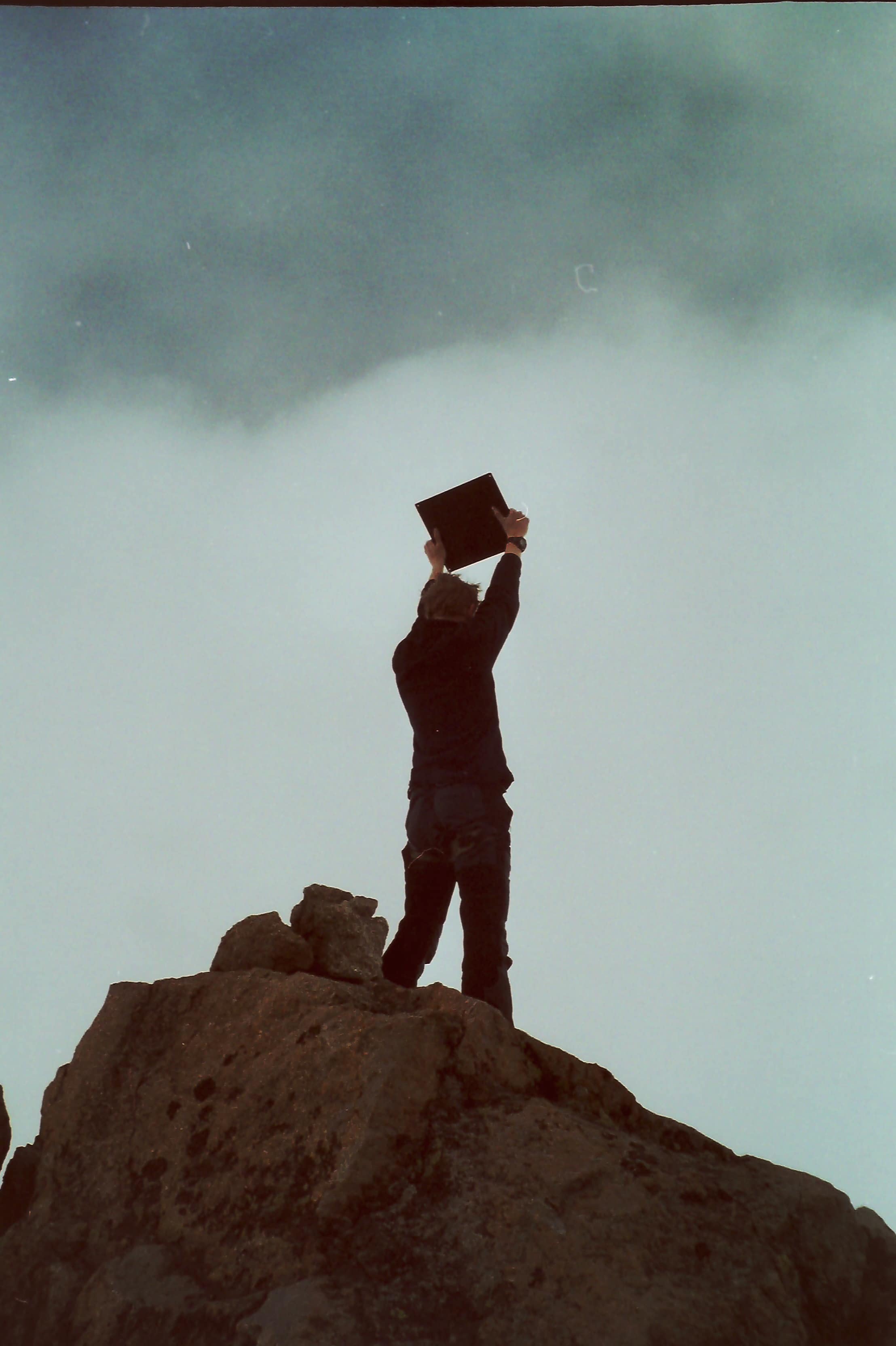 Trotz dieser Widrigkeiten erreichten mein Vater und ich am Mittag den höchsten Gipfel des Mount Kenya, verbunden mit der üblichen Euphorie, die auch Schneefall und Nebel nicht zu trüben vermochte. Der erneute Abstieg ins Col ging rasch. Dort allerdings ereignete sich ein kleines Missgeschick, das im Rückblick beinahe als Omen für die kommenden Stunden erscheint: Meinem Vater entglitt bei der Entnahme aus dem Rucksack die Wasserflasche und verschwand abwärts auf Nimmerwiedersehen. Da wir nur einen Rucksack mit uns führten, den wir abwechselnd trugen, hatten wir nunmehr keine Flache mehr dabei.
