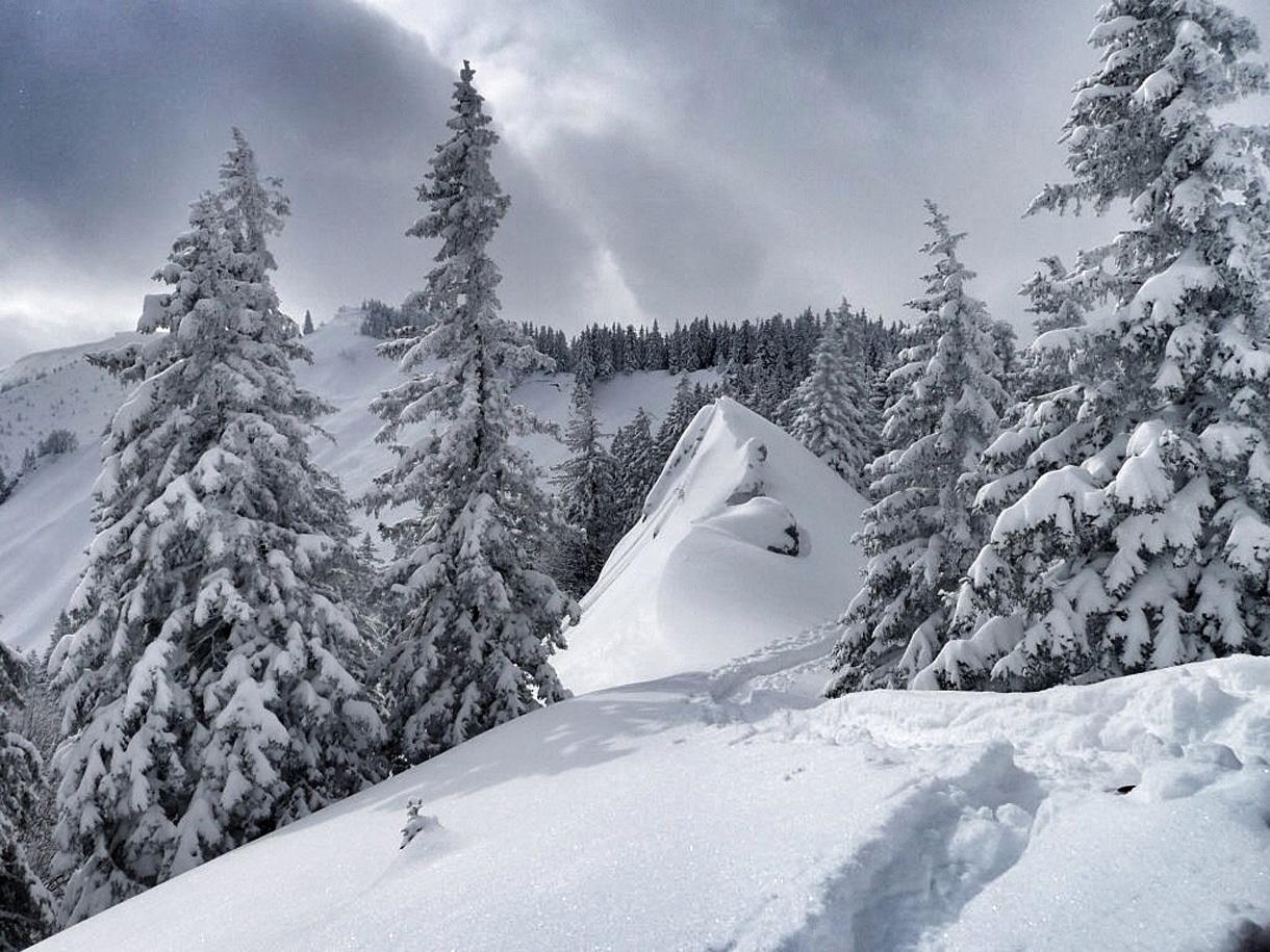 Der Heuraffelkopf ist ein 1.504 Meter hoher Berg in den Chiemgauer Alpen oberhalb des Prientals. Auf den Gipfel sind keine Wege ausgezeichnet – das macht ihn zu einem der weniger gut bekannten Gipfel in der Region. Auf seiner Nordseite führt ein Weg vom Predigtstuhl zum Laubenstein. Wir haben die Skier angeschnallt und sind die mittelschwere Skitour, die aber am Wochenende sehr beliebt ist, begangen.