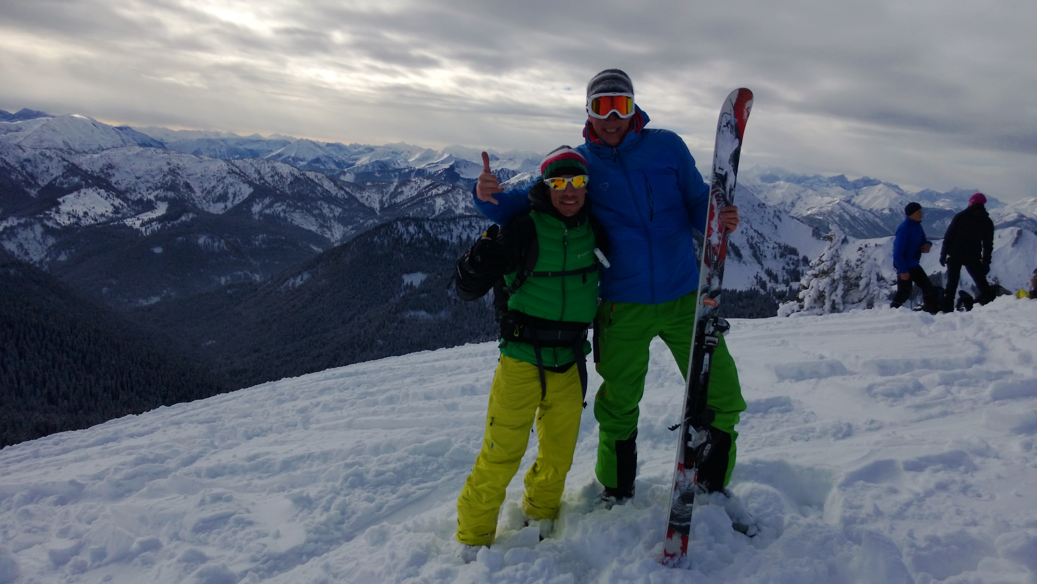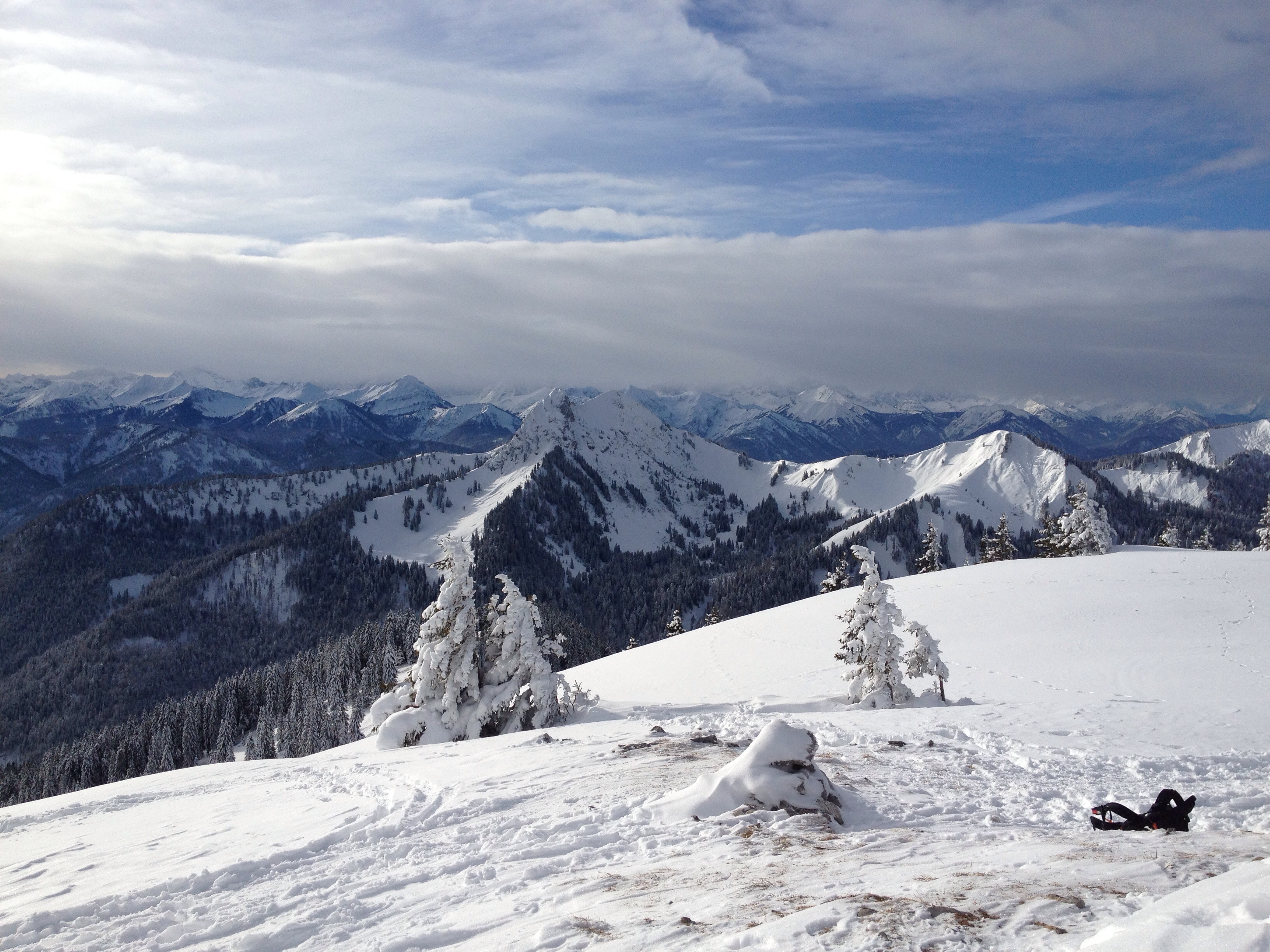 Um auf den Hauptgipfel zu gelangen, fährt (oder geht) man wenige Meter zum breiten Verbindungsrücken hinunter und erreicht, nach einem kurzen Gegenanstieg gut zehn Minuten später den Hauptgipfel von dem man die Tegernsee Bergwelt, Karwendel, Rofan und das Wettersteingebirge überblicken kann.