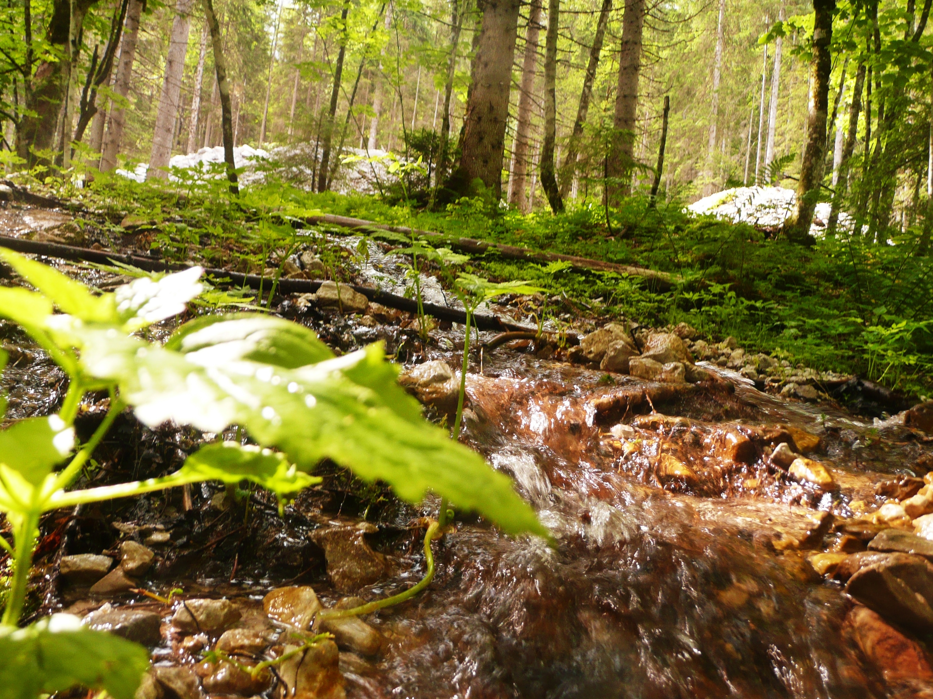Weiter geht es wieder ein Stück auf einem breiteren Forstweg (97). Nach 20 Minuten sollte man nicht den Einstieg in den Bettlersteig (827) verpassen, der nach rechts abgeht. Anfangs noch relativ flach und gemächlich, geht nach einem Gatter der eigentliche Steig los, der sich nun gut zwei Stunden hinzieht und tendenziell bergab, aber immer wieder mit leichten Gegenanstiegen durch den nördlichen Teil des Kaisergebirges, geht. Immer wieder wird der Blick auf die schroffen und steilen Hänge des Wilden Kaisers frei. Nach gut zwei Drittel der Wegstrecke passiert man den Eingang zum Güttlersteig (Klettersteig), den man rechts liegen lässt uns sich zum letzten, steilen, Teil des Abstiegs aufmacht, der am Anton-Karg-Haus (auch Hinterbärenbad) auf 936 Meter endet. Wer mag, kann hier einkehren oder das Hinterbärenbad, ein kleines, vom Gebirgsbach gespeistes Bassin, benutzen oder gleich weiter, leicht bergan, zum Hans-Berger-Haus (Kaisertalhaus) (936 m) aufsteigen.