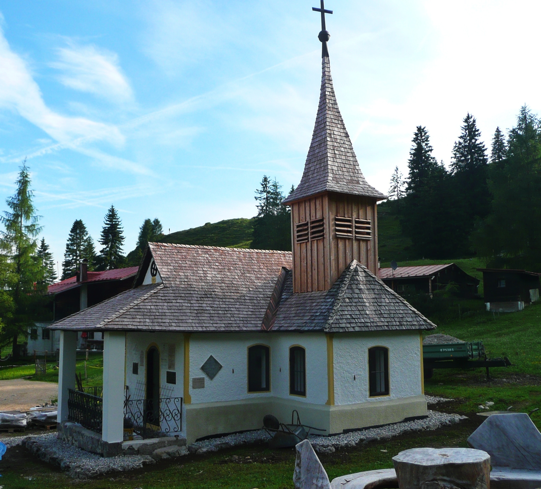 Startpunkt ist die Pension Maier westlichen Ende des Hintersteiner Sees. Gleich hinter der Pension biegt man auf einen breiten Forstweg (45) ein, der durch den Kitzgraben sich langsam und gemächlich in Richtung Walleralm und Hochegg (beschildert) hinaufschlängelt. Kurz unterhalb der Stöfflhütte folgt man der Beschilderung in Richtung Walleralm (823), die man nach wenigen Minuten erreicht hat. Die schöne Almanlage liegt in einem kleinen Hochtal kann auch zum übernachten genutzt werden. Kurz hinter der Walleralm (1.199 m) geht ein Steig in Richtung Hochegg und Kaindlhütte ab (827). Diesem folgt man gut 1,5 Stunden, bevor man einen Hügel mit Gipfelkreuz erreicht – dem Hochegg (1.470 m). In einiger Entfernung sieht man schon die Kaindelalm samt einiger Gehöfte. Man folgt weiter dem Adlerweg (827) und kann sich nach Lust und Laune auf der Kaindlhütte (1.293 m) stärken und die Aussicht genießen.