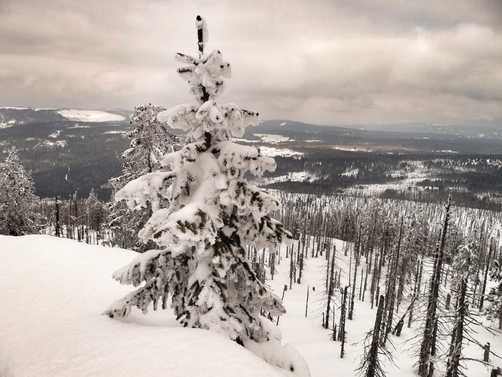 Der Nationalpark Bayerische Wald war für mich bis heute ein blinder Fleck. Wenn man die Münchener Hausberge und die Alpen quasi vor der Haustüre hat, stellt sich die Fragen, warum gut zwei Stunden nach Osten fahren. Zwei Dinge haben sich ab heute geändert: Ich kenne den Bayerischen Nationalpark nun ein bisschen und ich werde wieder nach Osten fahren. Nationalparks wie der Bayerische Nationalpark oder der Berchtesgadener Nationalpark haben ihre ganz eigene Atomsphäre. Die Natur wird hier in der Regel vollkommen sich selbst überlassen, im positivem wie im negativem Sinne. Den Großen Rachel, den ich mir als Tour für die “Erstbegehung” des Nationalparks rausgesucht hatte, ist vor einigen Jahren von einer Borkenkäferplage befallen worden. Teilweise gespenstisch stehen Stümpfe und tote Baummasten in der Landschaft. Aber die Besteigung lohnt sich trotzdem, die Strecke ist auch im Winter gut begehbar, auch wenn es ab dem Rachelsee doch deutlich steiler und tief verschneiter wird. Die rund 10 Kilometer sind abwechslungsreich und bieten im unteren Teil einen Urwalt- und Eiszeit-Lehrpfad an – für wen das denn ein Argument ist. Ein kleiner Abstecher zum Rachelsee und im Sommer auf das Waldschmidthaus runden die Tour ab. Die Tour ist ein Schutzgebiet für Auerhähne, daher sollten Wanderer auf den gut gekennzeichneten Pfaden bleiben. Die Rachlwanderung ist auf jeden Fall eine empfehlenswerte Strecke unter den Wandertouren im bayerischen Wald.