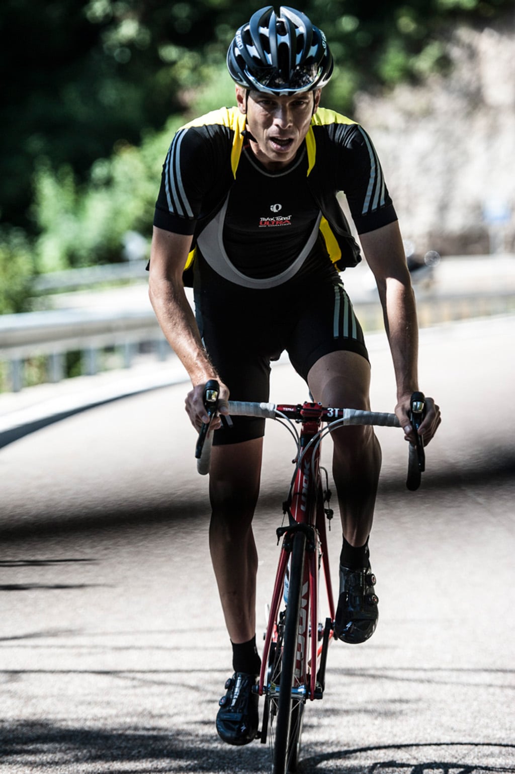 Der Rotwein lässt mich als Vorletzter zum Briefing erscheinen. So muss es sein, bei der „Tour“. Streckenprofile, Höhenmeter, Kilometer, ich präge mir mögliche Antritte und Ausbruchversuche ein, verwerfe aber sofort beim Ausatmen vom Rotwein-Rest. Ich bekomme noch mehr Mitleid beim Wochenprofil. Wie gut, das ich nur die Ouvertüre zu pedalieren habe. Neid entsteht erst bei den Videos, die das Team Südtirol auflegt. Unglaubliche Panoramen, Kulissen, Berge, Pässe. „Wenn einer eine Reise tut, dann kann er was erzählen“ schießt mir durch den Kopf. Die Gruppe wird Bilder auf der Festplatte haben bis Weihnachten 2022 haben. Die Stimmung ist mehr als gut. 28 Grad, Sonne, Traumberge in Sicht – Materialausgabe die Zweite steht an. Technisch betreut wird die adidas journey von Ronny Scholz mit Bikes, die ich gerne heimlich mitnehmen würde. Ich bekomme ein Specialized von einem Tour de France-Teilnehmer. Ich traue mich kaum einzuklicken, stelle aber fest, dass man auch so ein Bike erstmal treten muss. Ein letztes Fotoshooting und die Gruppe fährt los. Wir schlängeln uns durch Bozen gen Südwesten in Richtung Mendelpass. In Zweiergrüppchen fahren wir durch die sich aufbauenden Landschaften, Weinberge und die in der Sonne liegenden Hügel. Ich merke, dass sich der Rotwein wie der Frühnebel auflöst und freue mich auf den ersten Anstieg. Der Mendelpass ist im Vergleich zu dem, was dem Team in der nächsten Woche bevorsteht, nur ein Klacks. Dennoch muss er gefahren werden. Ich hänge neben Dan, als wir die Abbiegung zum Pass erreichen. Wir quatschen über Fotos und wie man die Kamera hält, als vorne plötzlich das Tempo abgeht. „Ich bin kein urbaner Titan“ denke und ich und rufe Dan noch zu, „lass die Hufe greifen“. Macht er. Die nächsten zwei Stunden habe ich ihn auch nicht mehr gesehen. Wie wilde Ponys stürmen die Jungs und Hannah los. Ich sehe nur Asphalt und eine piepsende Pulsuhr. Tempo und der Wille, hier noch etwas in Richtung Renntaktik und Ausgang beeinflussen zu wollen, koppeln sich mit der Realität. Die heißt: Pulsuhr vor der Überhitzung schützen. Die adiadas journey hat mit Ronny Scholz einen ehemaligen Tour de France Fahrer vom Team Gerolsteiner an die Seite bekommen. Auch dessen Teamwagen. Ab und an fährt er an mir vorbei. „Du liegst gut“. Hoffnung wird durch das Sein und Jetzt in Wahrheit verwandelt. Vorne sind viele, hinten wenige. Das neue Ziel entnehme ich dem Pferdewettsport. Ich setze auf „Platz“, kurble mein Tempo weiter, und verfluche den bayrischen Frühling, der einfach keine Rennrad-Kilometer im Frühjahr zugelassen hat. Scheinbar waren Barcelona, Manchester und Berlin davon nicht betroffen. Gut zwei Stunden später sehe ich sie wieder: Hannah, Dan, Ralf, Simón, David, Claudia, Tim – es wurden schon fleißig Sonnencreme samt Isogetränke verteilt. Wahre urbane Titanen, denke ich und schleppe mich zum Tour de France Wagen um gleichnamiges zu suchen.