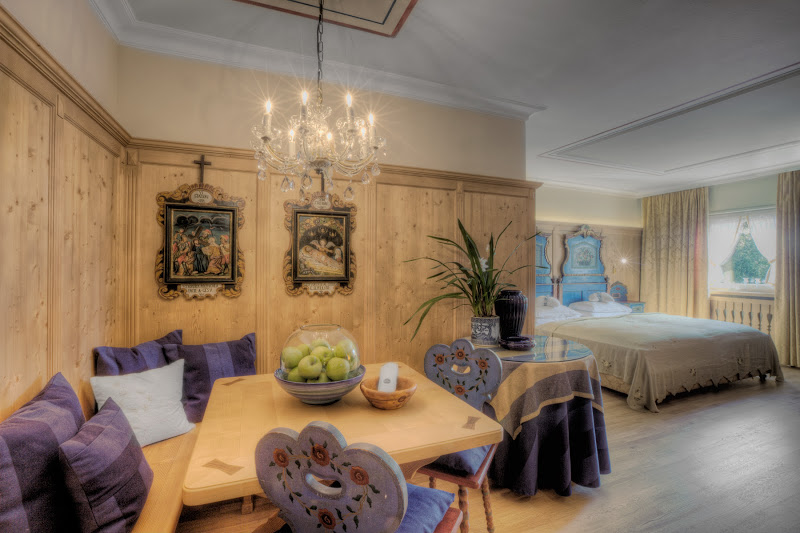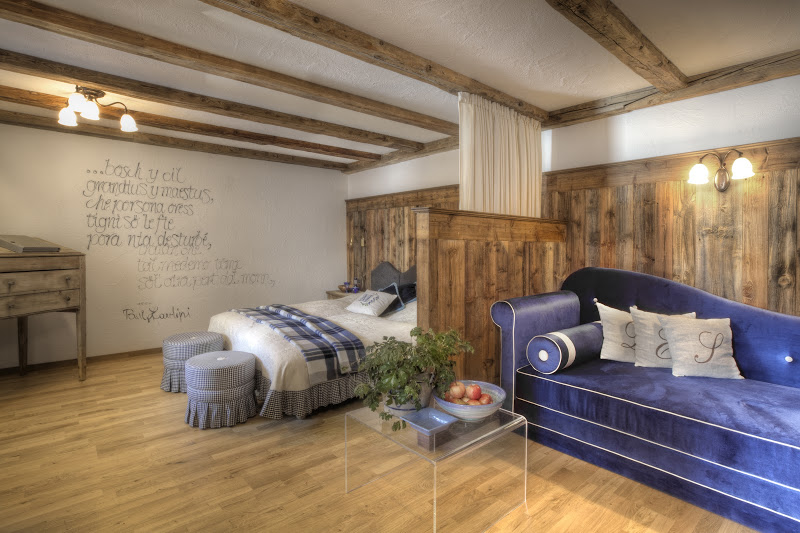 Auch in den Zimmern des Hotels genießt man, den Sternen des Hotels entsprechend, höchsten Komfort. Die verschiedenen Suiten haben alle interessante Extras – jedes ist individuell eingerichtet. Mal ein Himmelbett, mal in im Ladinischen Bauernhofstil eingerichtetes Romantikzimmer. Von den einzelnen Zimmern hat man teilweise auch einen wunderbaren Blick auf die umliegenden Berge oder die schönen Sommerwiesen. Alle Zimmer verfügen über einen gratis Highspeed-Internet Anschluss. Einen WLAN-Zugang erhält man in an der Rezeption des Hotels.