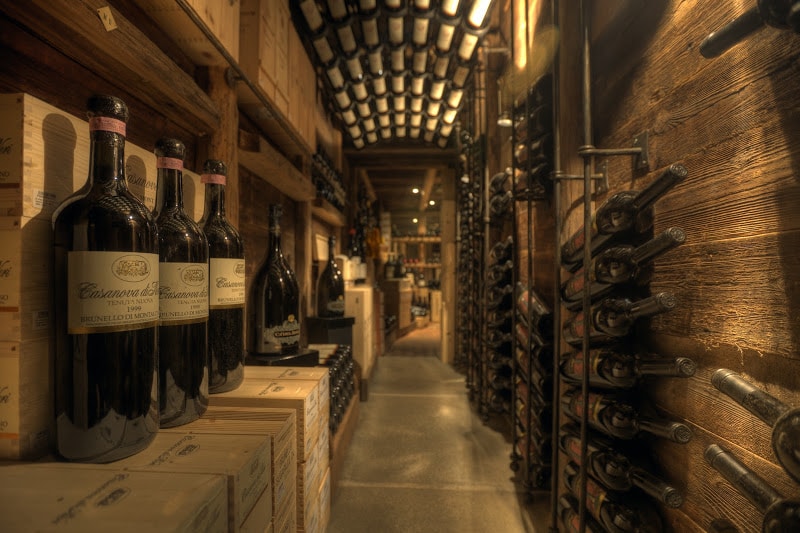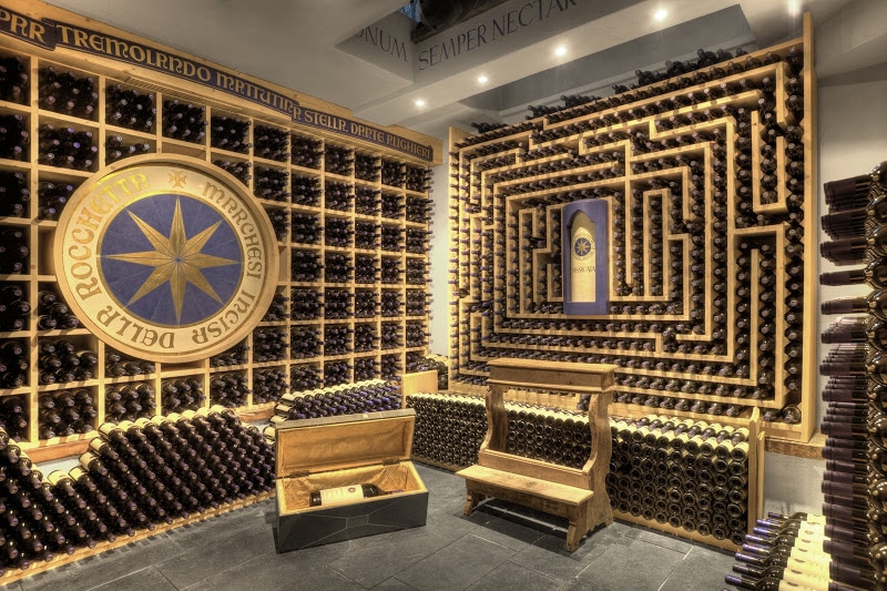 Neben all dem verfügt das „La Perla“ über einen der beeindrucktesten Weinkeller in ganz Italien. Herein kommt man nur mit einem der vier Schlüssel für die Tür, die neben den drei Brüdern nur der Sommelier besitzt. Aber natürlich gibt es auch hier ein Hintertürchen – wie im wahren Leben auch. Durch ein Fass kann das Personal an einer ausrangierten Feuerwehrstange in den Keller hinabrutschen und sich den bestellten Wein aus dem Regal nehmen. Hinauf geht’s wieder durch das alte Weinfass – in einer kleine Klettereinlage im 1. Grad. Ein Fass ohne Boden – im wahrsten Sinne des Wortes.