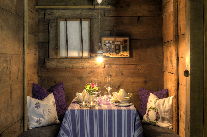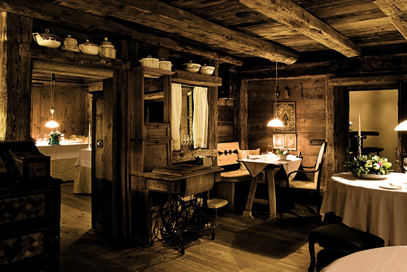 Hotel La Perla Corvara - die Region Alta Badia in den Dolomiten zieht mit ihren Pisten und Gipfeln Skifahrer und Wanderer gleichermaßen an. In letzter Zeit kommen dank der zahlreichen erstklassigen Restaurants auch vermehrt Gourmets in diese herrliche Gegend. Eine der besten kulinarischen Adressen ist La Stüa de Michil im La Perla, einem Hotel in Corvara in Familienbesitz. Das Restaurant wurde mit einem Michelin-Stern ausgezeichnet und ist der Beweis dafür, dass die Auszeichnung kein übertrieben formales Ambiente voraussetzt. Das Speisesaal ist holzvertäfelt. Kerzen sorgen für eine dezente Beleuchtung und Antiquitäten und Originalkunstwerke runden das Ambiente ab