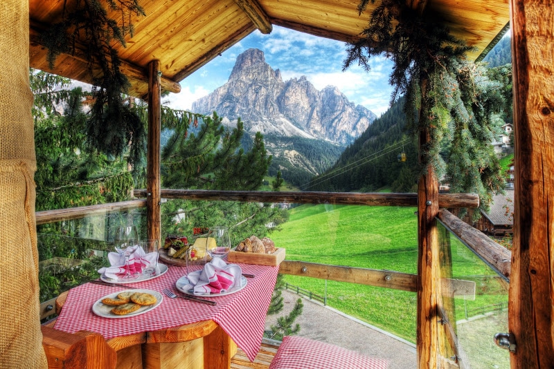 Das „La Perla“ liegt im Gadertal, auf ladinisch und italienisch, Val Badia in Südtirol. Der Namensursprung des Tals leitet sich vom Namen des Fluss Gader (ladinisch: La gran Ega, „das große Wasser“) ab, der sich durch das Tal zieht. Am bekanntesten ist die Region Alta Badia sicher durch das Skigebiet Alta Badia, in dem jährlich ein SuperG Wettbewerb ausgetragen wird. Der Name Abteital, der teilweise als Synonym zum Gadertal verwendet wird, bezieht sich eigentlich nur auf den am höchsten gelegenen Talabschnitt südlich von St. Leonhard. Und genau hier befindet sich auch das Skigebiet Alta Badia mit der Piste Gran Risa. Wer sich auf Italienisch oder deutsch für seine Italienreise eingestellt hat, wird mitunter verwundert sein, das es man selbst dem einfachstem „Lido-Italienisch“ im Gespräch zweier Einheimischer nicht folgen kann. Das Gadatal ist das „ladinische Herz“ – gut 30.0000 Menschen sprechen diese Sprache noch und die ladinische Lebensweise und Sprache sind hier sehr lebendig geblieben. Ein Abschiedsgruß via Email aus dem „La Perla“ endet dann auch mit „de bi salüc“, und wie selbstverständlich wird man morgens auch auf ladinisch begrüßt.