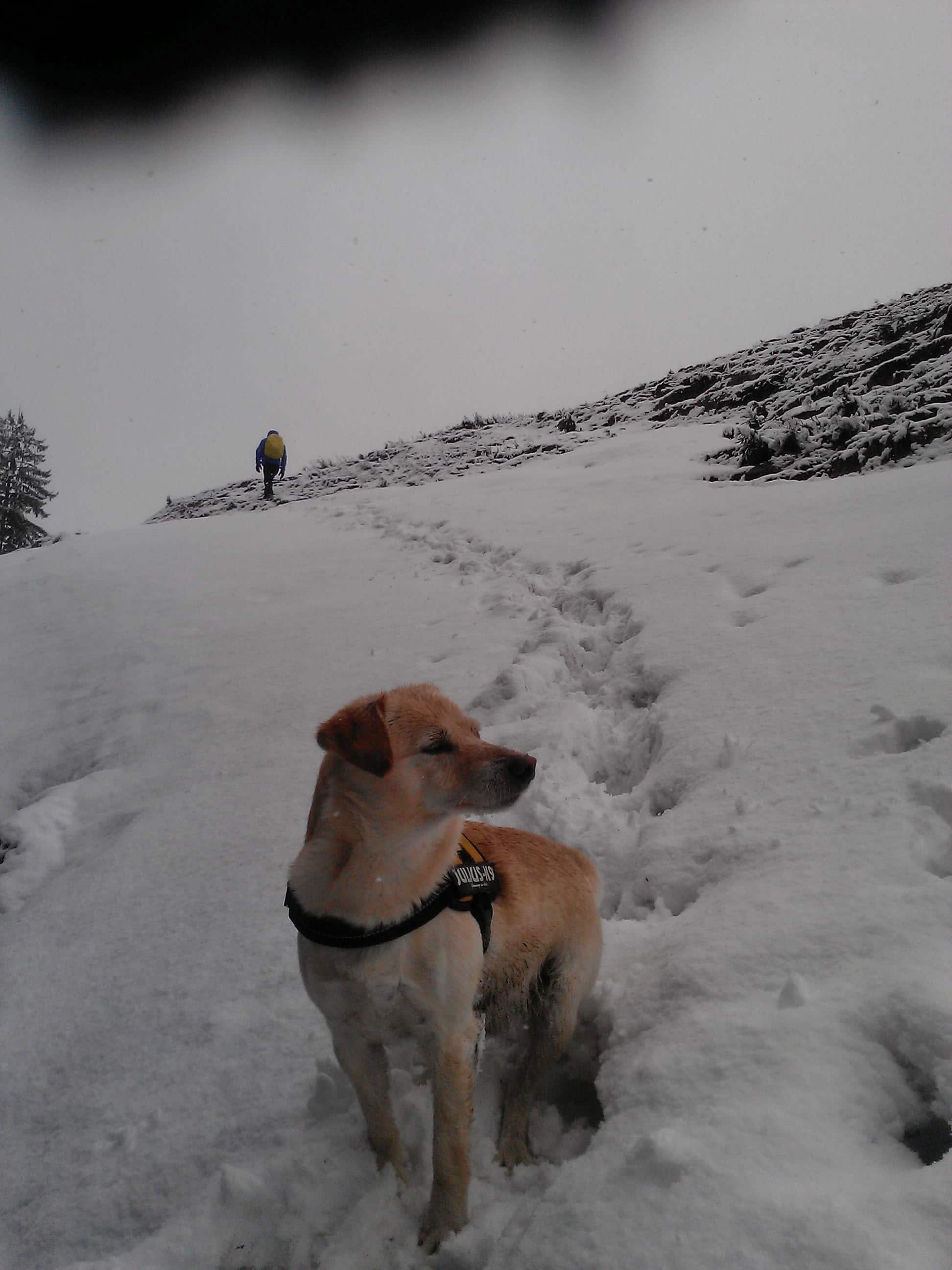 Wenn es an einfachere Touren ohne lästige Treppchen und Steigeisenausrüstung geht, dann ist der treuste Hikeandbike-Fan Samy mit dabei. Mit 15 Zentimeter Beinlänge und Quadro-Antrieb hat er sich auf das Mittelgebirge spezialisiert. Dabei gilt für ihn scheinbar folgende Wanderformel: Zuerst ganz vorne, dann, nach getaner Führungsarbeit taktisch ins Mittelfeld zurückfallen lassen um an Ende die Nachhut zu organisieren. Wer will es ihm bei der Beinlänge verdenken.